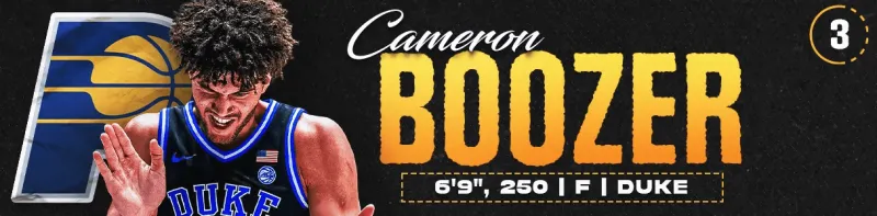 步行者球迷希望的是,NBA乐透抽签夜不要带来任何不愉快的意外。在从快船得到伊维察·祖巴茨之后,如果这个选秀权最终落在前四顺位,步行者的作战指挥室里将会一片欢腾。就这些新秀的潜在适配性而言,印第安纳拥有高顺位球队中最好的阵容之一。目前,步行者暂列第三顺位,这可能带来一个有趣的难题。虽然凯莱布·威尔逊会让每个手握前几顺位的球队在决策时都犹豫一下,但毫无疑问,卡梅伦·布泽尔与步行者是天作之合。布泽尔刚刚在杜克蓝魔度过了一个辉煌的大一赛季,他在球场上是一台机器。他是篮下的猛兽,他快速的场上决策、篮板和组织能力,将使步行者迅速启动并运转起来,但愿能让他们尽快翻过这个过渡赛季。得到祖巴茨,再加上布泽尔,步行者拥有了一个极具威胁的前场组合,兼具组织能力和篮板能力,能与球队阵容中的其他资产完美搭配。