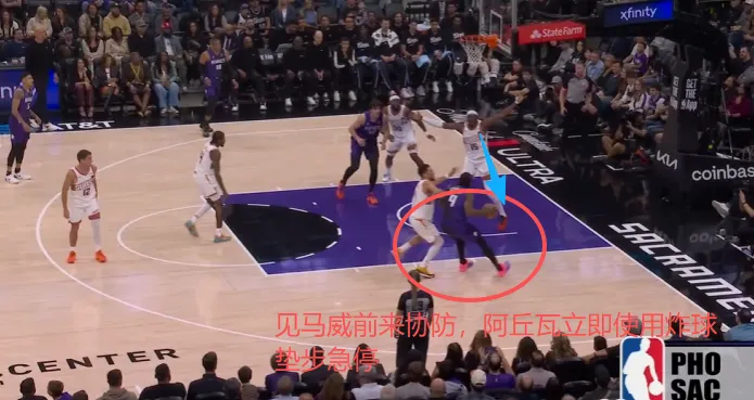 下面就跟随细节镜头,来逐帧拆解阿丘瓦在对阵太阳的比赛中,精彩的攻防表现与暴力隔扣表演。